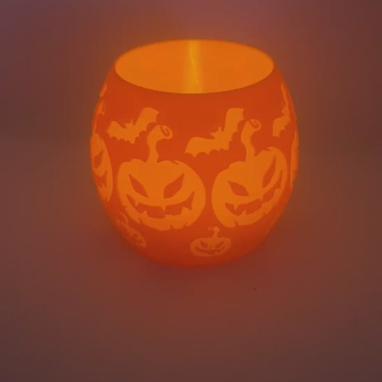 Das warme, flackernde LED-Licht leuchtet durch das aufwendig gearbeitete Kürbis-Design mit bösen Grimassen und flatternden Fledermäusen. Ideal als Tischdeko, auf der Fensterbank oder im Eingangsbereich – für ein perfektes Halloween-Ambiente ohne offene Flamme.